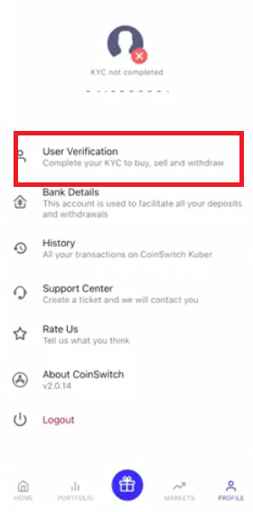 to do KYC for which you will click on the profile.
